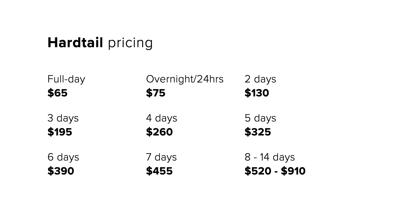 Hardtail bikes require a pre-authorization of $1000 per bike