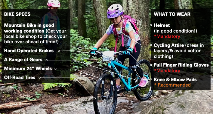 During camp registration we’ll ensure you have everything you need, and that we have all required info & documents filled out. We’ll start Day 1 with some fun biking games to get everyone acquainted & then it’s off to the trails.