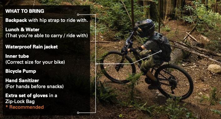 After check-in at Carisbrooke Elementary, we’ll warm up in the school yard before progressing onto the flowing lower Mt. Fromme trails. Day 2 is all about mastering cornering and bike control, starting with fun low-speed drills and skill games, then we’ll explore new trails and ensure everyone is having #goodtimesonbikes throughout the ride.